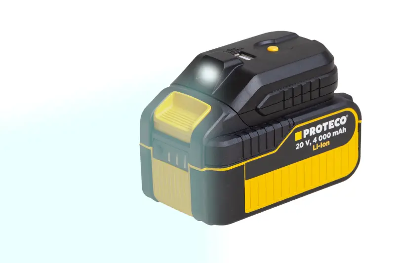 Adaptér na akumulátory PROTECO AKU 2000 mAh a 4000 mAh je zařízení navržené na nabíjení mobilních telefonů, tabletů, kamer atd. pomocí 5 V USB-A portu. Adaptér umožňuje efektivní využití energie v terénu, na cestách nebo v situacích, kde není k dispozici standartní zásuvka. LED svítilna, která je zabudovaná v adaptéru, poskytuje jasný a energie úsporný zdroj světla, který je ideální pro osvětlení prostředí ve tmavých podmínkách, jako je kempování, turistika nebo nouzová situace. Své místo najde i v opravnách vozidel. Bezpečnost je klíčovou prioritou, a proto je adaptér na akumulátor s LED svítilnou vybaven integrovanými funkcemi ochrany proti přepětí, přetížení a zkratu. To zajišťuje bezpečné a spolehlivé používání i v náročných podmínkách.