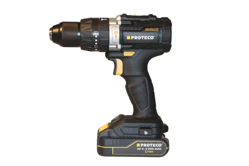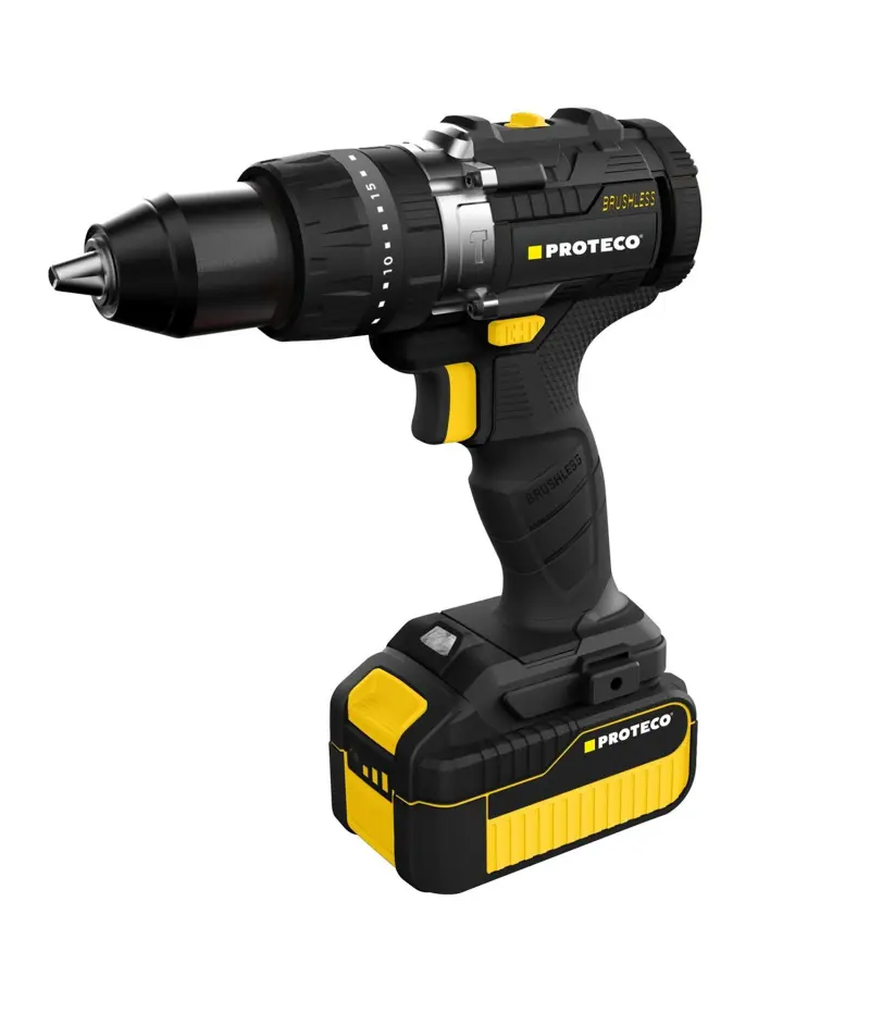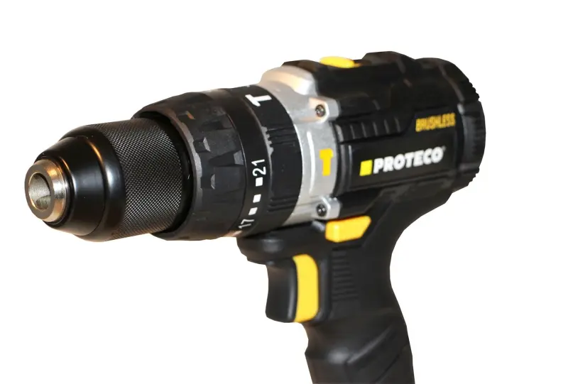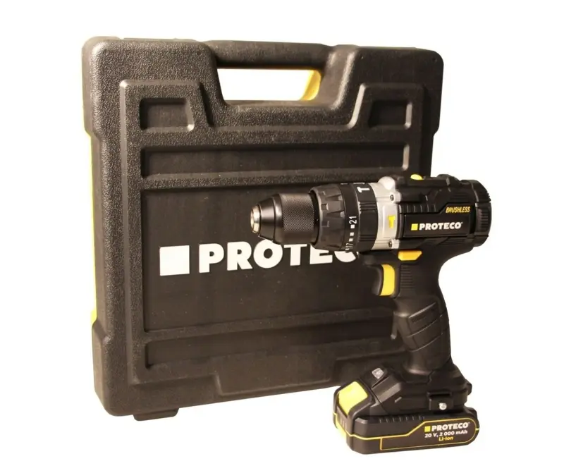 Vrtačka s příklepem akumulátorová Proteco je nepostradatelný všestranný pomocník, s nímž je hračkou jak vrtání, tak šroubování. Vrtačka je osazena brushless (bezuhlíkovým) motorem, který umožňuje dosáhnout vyššího výkonu, kroutícího momentu i jeho lepšímu průběhu. Kroutící moment příklepové vrtačky je 60 Nm, což jistě ocení každý kutil. Do sklíčidla můžete upnout vrtáky s průměrem max. 13 mm. Vrtačka je také vybavena LED světlem pro práci v hůře dostupných místech.