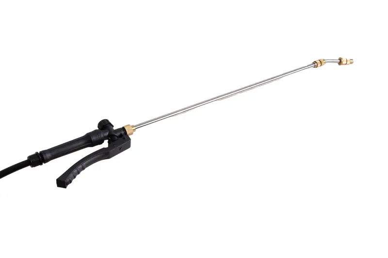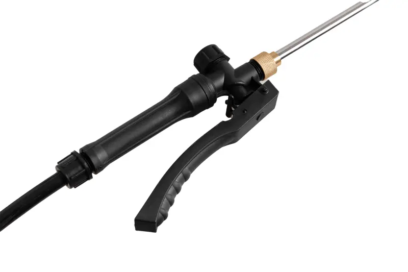 Teleskopická výstupní trubice a nastavitelná tryska - Umožňuje upravit délku, dosah, vzor a šířku postřiku od jemného mlžení po silný proud