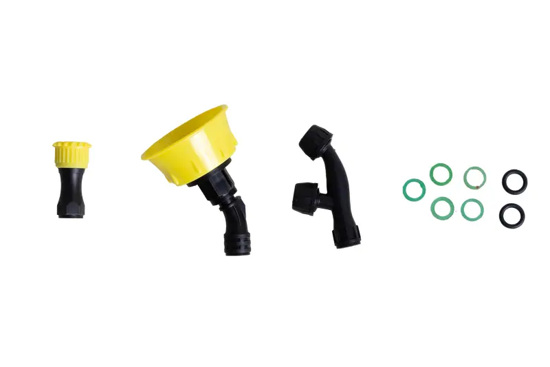 Součástí balení: akumulátor, nabíječka, sada trysek (mosazná tryska, dvojitá tryska, 4-bodová tryska a 5-bodová sprchová tryska), popruhy
