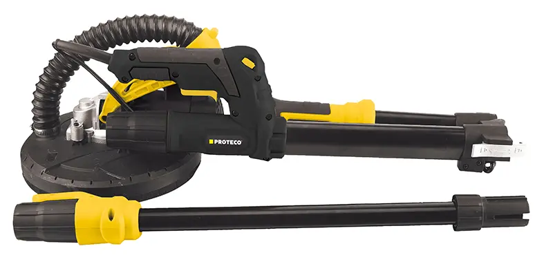 Kvalitní elektrická bruska na sádrokarton 'žirafa' Proteco 600 W je určena především pro broušení sádrokartonů, stropů a vnitřních a vnějších stěn. K dispozici však nabízí širokou škálu dalších možností využití, jako je například odstraňování zbytků z podlah, nátěrů, lepidel, omítky a podobně. V přední části brusky se nachází hlavice s brusným papírem. Průměr brusné hlavice je 225 mm, přičemž poskytovaný průměr broušení je 215 mm.