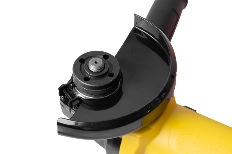 Bruska je vybavena ergonomickou hlavní rukojetí a přídavnou boční rukojetí, kterou lze nastavit do různých pozic pro pohodlné vedení nástroje. Kompaktní tělo je dobře vyvážené a snadno se ovládá i při delším používání. Ochranný kryt kotouče chrání uživatele před odlétávajícími částicemi a zvyšuje bezpečnost při práci. Navíc je bruska konstruována s ohledem na nízkou hladinu hluku – hlučnost při práci nepřesahuje 86,4 dB, což přispívá k většímu komfortu.