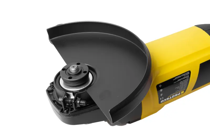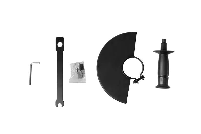 Bruska je vybavena ergonomickou hlavní rukojetí a přídavnou boční rukojetí, kterou lze nastavit do různých pozic pro pohodlné vedení nástroje. Kompaktní tělo je dobře vyvážené a snadno se ovládá i při delším používání. Ochranný kryt kotouče chrání uživatele před odlétávajícími částicemi a zvyšuje bezpečnost při práci. Navíc je bruska konstruována s ohledem na nízkou hladinu hluku – hlučnost při práci nepřesahuje 86,4 dB, což přispívá k většímu komfortu.
