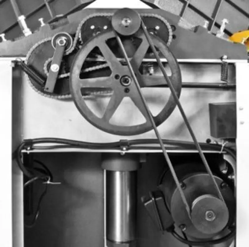 Srovnávačka je osazena výkonným 3 fázovým asynchronním motorem s měděným vinutím, který přes 2 klínové řemeny pohání nožový hřídel a následně i převodovku tloušťkování. Nožový hřídel o průměru 75 mm je osazen 3 přebrousitelnými noži o délce 250 mm z HSS materiálu pro maximální kvalitu povrchu, zároveň je uložen ve dvouřadých kuličkových ložiscích pro eliminaci axiálních vůlí v ocelových pouzdrech, upevněných k litinovým bočnicím. Pohon tloušťkování je zajištěn pomocí třecího převodu pogumovaného kola vůči nožovému hřídeli a následně primárním a sekundárním řetězovým převodem na podávací válce.