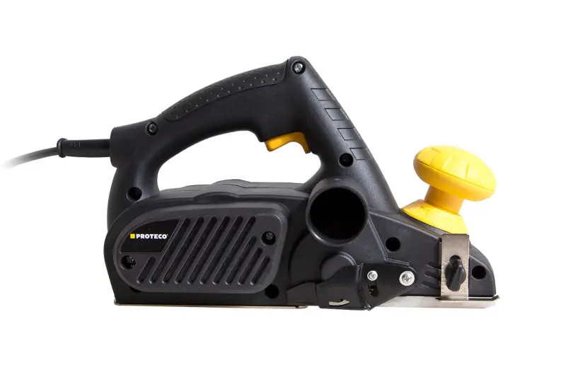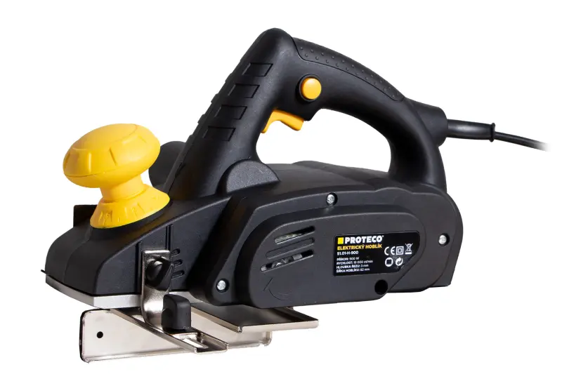 Elektrický hoblík PROTECO je vhodným nástrojem pro opracování a hoblování materiálu jako jsou břevna, hranoly a desky. Zajistí kvalitní opracování dřeva bez zbytečné námahy, protože je opatřen elektromotorem o výkonu 900 W. Nabízí snadno nastavitelný úběr v rozmezí od 0 až do 3 mm. Šířka hoblování a šířka záběru je 82 mm poskytuje nejlepší výsledek. Díky tomu dosáhnete efektu dle Vašich představ. Lze jej také použít pro vytváření falců, tedy žlábků a drážek. Je vybaven protiskluzovou ergonomickou rukojetí, jež poskytuje náležitý komfort. Elektrický hoblík řeže konstatní rychlostí, díky tomu se neucpe hoblinamy. Potěší také snadnou údržbou a výměnou součástek při jejich opotřebení. Na hoblík lze také připojit odsavač pilin nebo vysavač.