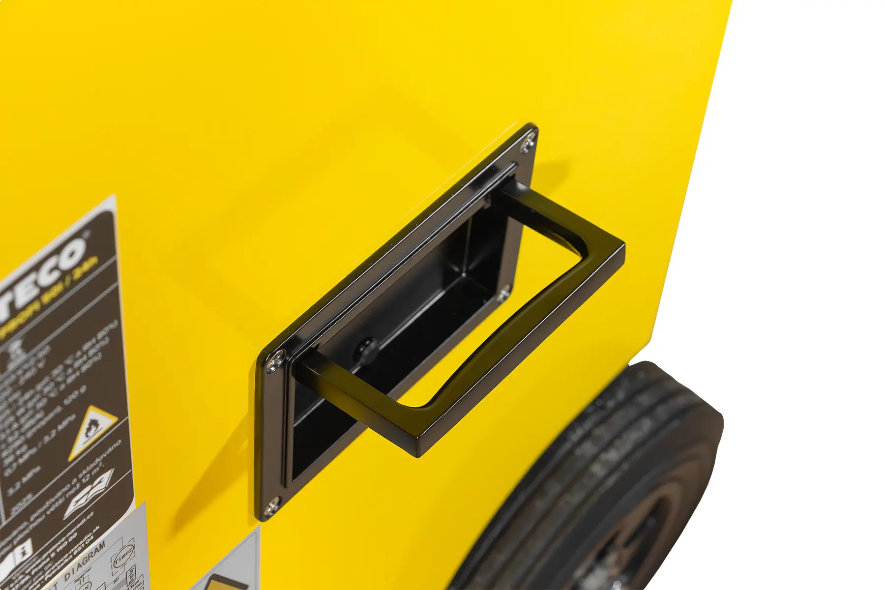 Konstrukce je přizpůsobená častému přesouvání. Velká transportní kolečka a integrované madlo umožňují snadnou manipulaci i při plném provozním zatížení. Přístroj má kompaktní rozměry, díky nimž je vhodný i pro provoz v menších prostorech, jako jsou sklepy, kotelny nebo jiné technické místnosti.
