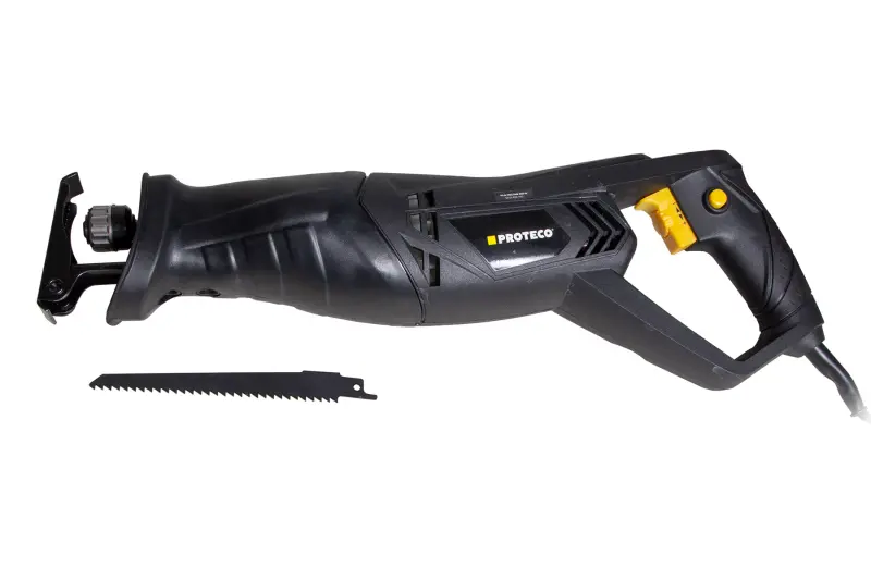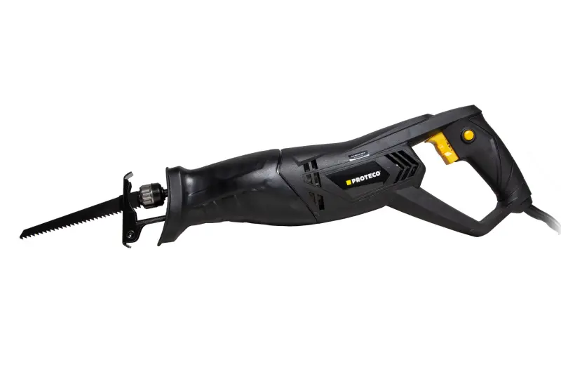 Pila mečová Proteco je ideálním řešením pro snadné a rychlé řezání dřeva, umělé hmoty a dalších materiálů doma, v dílně i na zahradě. Silný elektromotor pohání pilový list přes ocelový převod se šnekovým ozubením. Počet kmitů lze regulovat plynule vypínačem. Pevné tělo pily je opatřeno pryžovým návlekem v místě rukojetí, a spolu s zadní rukojetí je tak práce pohodlná i v hůře přístupných prostorech.