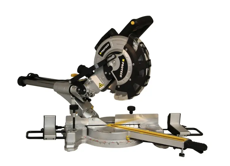 Pokosová pila s posuvem a laserem Proteco je vhodná ke kapování, podélnému a příčnému řezání dřeva a plastu v závislosti na její velikost. Možnost otáčení stolu a naklápění kotouče. Laserový ukazatel usnadňuje rovný řez. Radiální posuv řezací jednotky umožňuje řezání dřeva. Odolná konstrukce s trubkovým vedením pojezdu a ergonomická ovládací rukojeť. Posuvné hliníkové podpěry děleného materiálu.