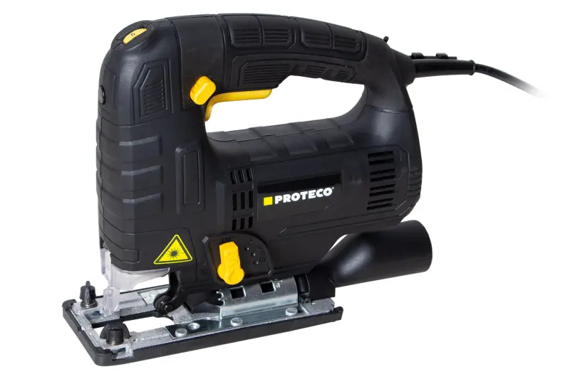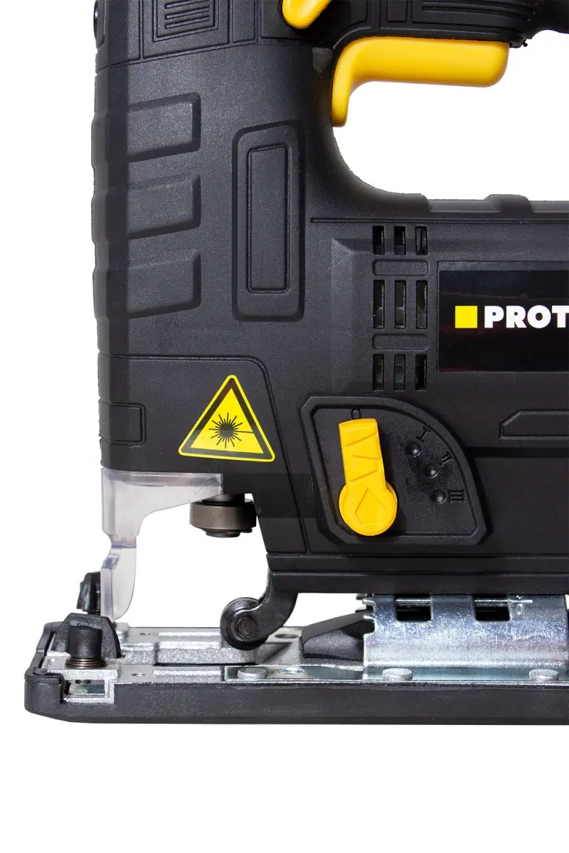 Pila Přímočará 800 W Proteco nabízí díky své nízké hmotnosti a snadné ovladatelnosti příjemný komfort při práci. Plynulá regulace otáček a hloubka řezu 85 mm. S pilou můžeme řezat a vyřezávat otvory ve dřevě a dřevovláknitých deskách, plastu nebo oceli. Pilové plátky snadno vyměníte díky rychloupínacímu držáku. Držák pilového listu umožňuje předkmit ve 3stupních. Pila obsahuje aretační páku pro rychlé nastavení úhlu podstavce vyrobeného z hliníkového odlitku, laserovou naváděcí linku a výstup pro připojení hadice odsávání.