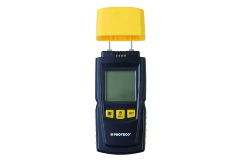 S hrotovým vlhkoměrem PROTECO snadno změříte vlhkosti dřeva a stavebních materiálů. Měřič vlhkosti umožňuje měřit čtyři typy dřev a čtyři typy stavebních materiálů. Přesnost měření +- 2 % LCD displey. Měřící hroty o délce 9,8 mm. Vlhkoměr je napájen 2 x 1,5V AAA bateriemi. Automatické vypnutí po 10 minutách.