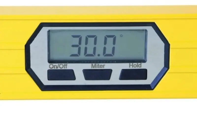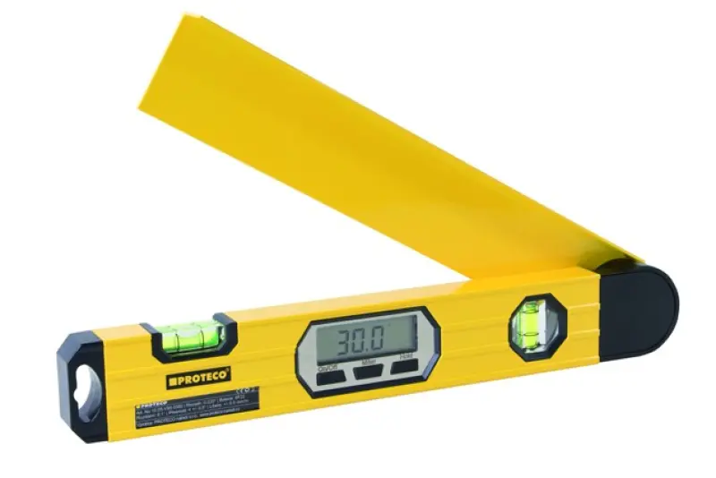 Úhloměr digitální s vodováhou tento přístroj lze používat jako elektronický úhloměr nebo konvenční vodováhu. Lze jím měřit a přenášet úhly. Přístroj má i funkci přepočtu úhlů pro nastavení úhloměru pily pro pokosový řez.