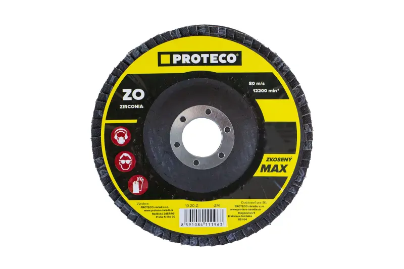 Brusný zkosený lamelový kotouč na broušení oceli a nerezu. Ideální pracovní úhel 15-35°.