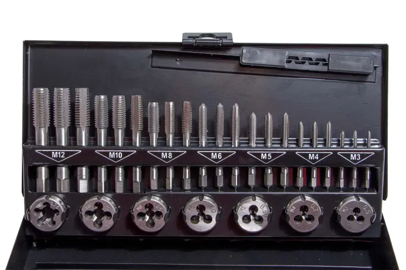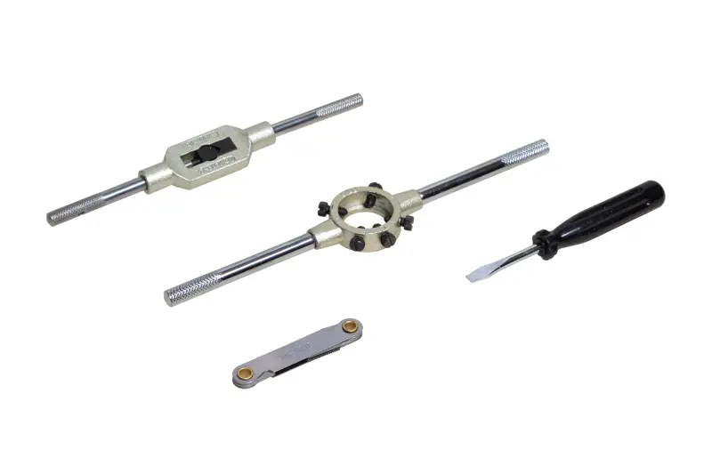 Závitníky a čelisti jsou vyrobeny z nástrojové oceli. Sada obsahuje závitové kruhové čelisti dle ČSN EN 22568 - M 3, 4, 5, 6, 8, 10 a 12, závitníky sadové dle ČSN 22 3010 - M 3, 4, 5, 6, 8, 10 a 12, vratidla pro kruhové čelisti, závitové měrky a vratidlo pro závitníky.