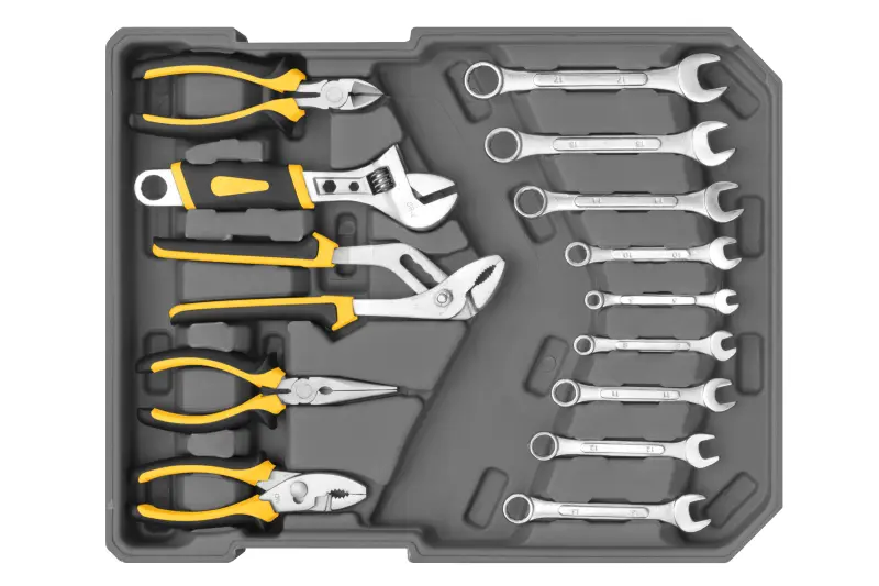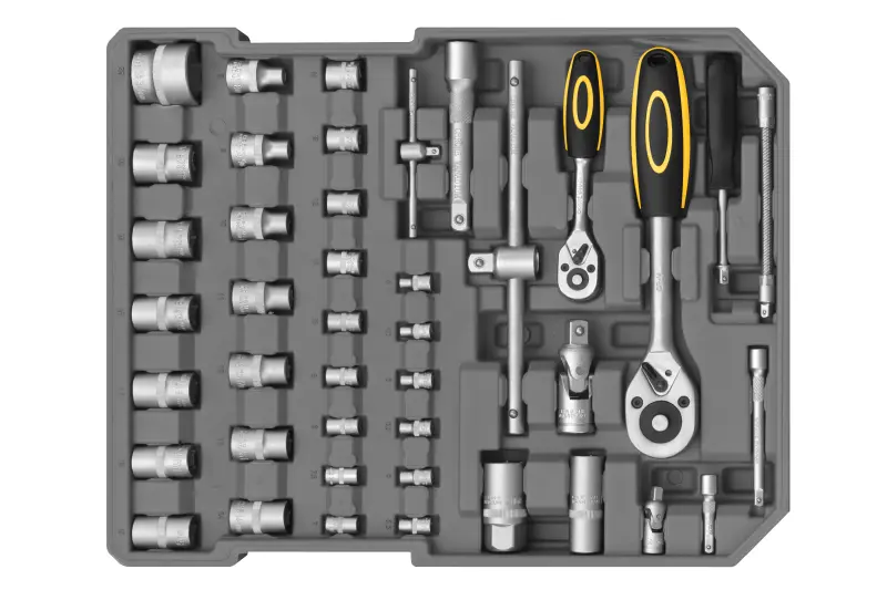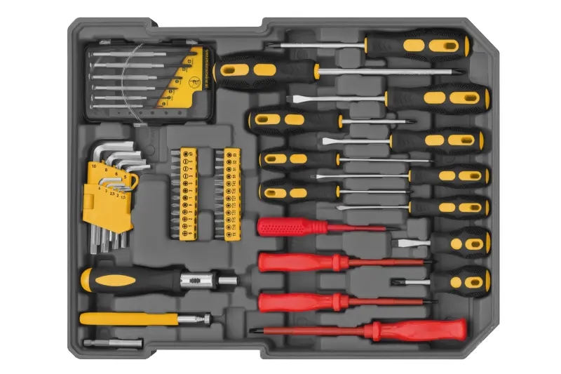 Sada nářadí v kufru na kolečkách 245 dílů je pomocníkem pro běžnou údržbářskou, ale i tvůrčí práci doma, v dílně nebo na zahradě. Jedná se o obsahově velkoryse vybavenou sadu ručního nářadí z vysoce kvalitní chrom-vanadiové oceli. V praktickém, kompaktním a zároveň vysoce odolném hliníkovém kufru na kolečkách lze tak získat nepřeberné množství hlavic, klíčů, kleští, šroubováků a mnoho dalšího nejpoužívanějšího nářadí, které díky precizně tvarovaným výplním zůstane vždy na svém místě.