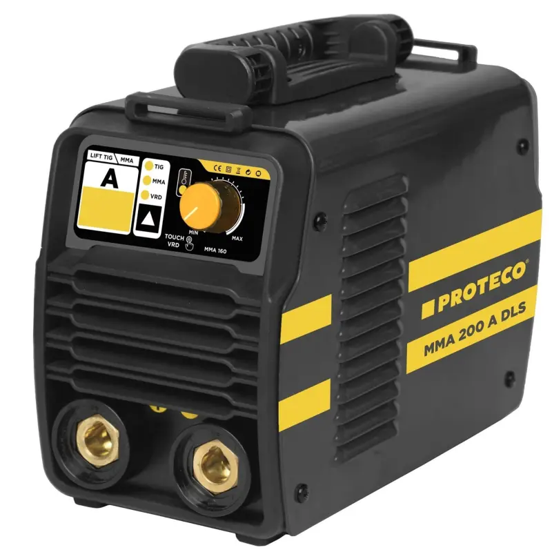 Svařovací invertor Proteco je invertorový zdroj s plynulým nastavením svařovacího proudu určený pro rušní obloukové svařování ocelí obalenou elektrodou. Tento invertor je dále osazen tepelnou ochrannou se signalizací přehřátí, výkonovými tranzistory IGBT a funkcemi HOT START, ANTISTICK, LIFT TIG DC a ARC FORCE. Obsahuje displej zobrazující červeně nastavenou hodnotu proudu, u zatěžovatele 200A (30%). Součástí svařovacího invertoru jsou i svařovací kabely MMA (TIG kabely nejsou součástí).