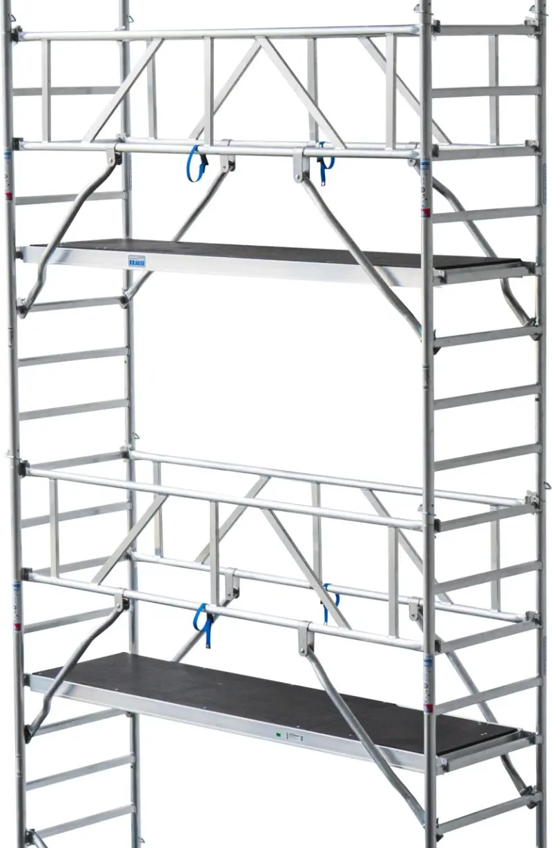 Profesionální lešení vhodné pro náročné práce ve výšce 9,50 m, poskytuje robustnost, flexibilitu a bezpečnost v duchu značky KRAUSE. Díky modulární konstrukci, snadné montáži a osvědčeným bezpečnostním prvkům je ideální volbou pro řemeslníky, stavby i profesionální servisní práce. Lešení splňuje normu DIN EN 1004-1, je TÜV testováno a patří do zatížitelnostní skupiny 3 s nosností 200 kg/m².