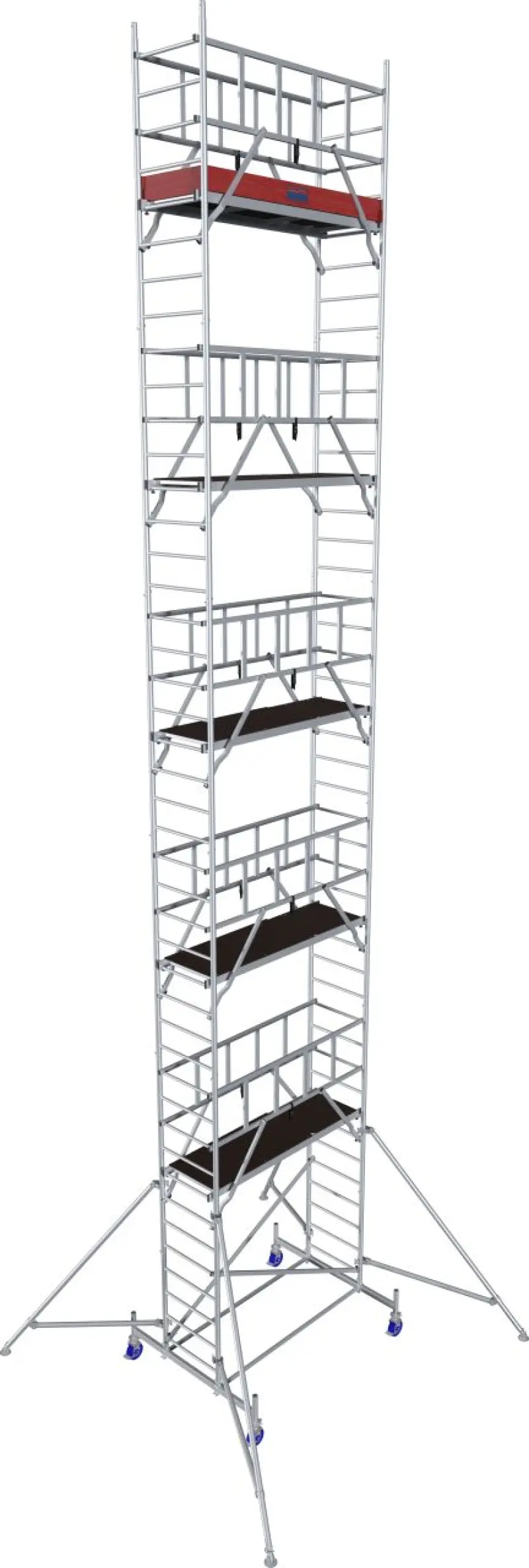 Plošina o rozměru 2 x 0,6 m je tvořena z klimaticky odolné protiskluzové desky z fenolové pryskyřice, což zamezuje uklouznutí a zajišťuje maximální životnost lešení. Lešení je dále vybaveno výškově nastavitelnými, brzděnými pojezdovými kolečky, které oceníte zejména pro snadný přesun lešení a také možnost vyrovnat výškové rozdíly na nerovném terénu. Vysokopevnostní ocelový stabilizátor poskytuje nadstandardní stabilitu celé konstrukci.