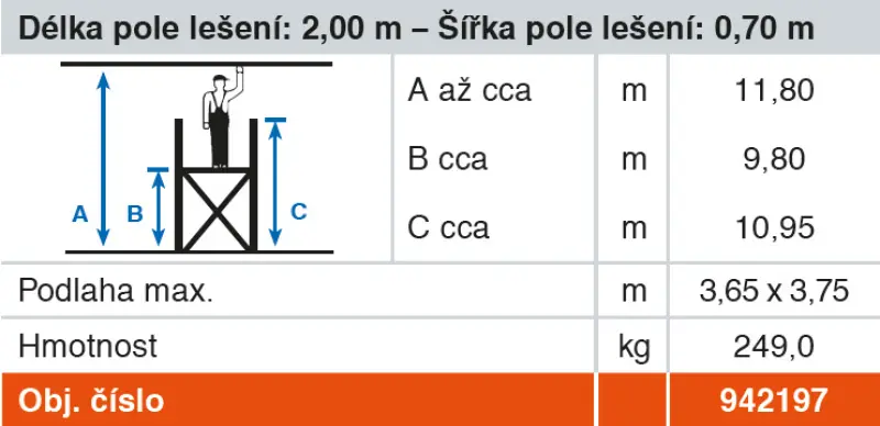 • Optimální stabilita díky vysoce pevné ocelové traverze od pracovní výšky 3,80 m