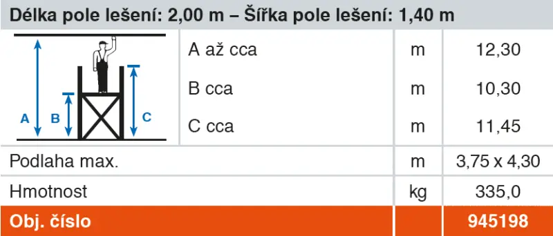 • Optimální stabilita díky vysoce pevné ocelové traverze od pracovní výšky 4,30 m