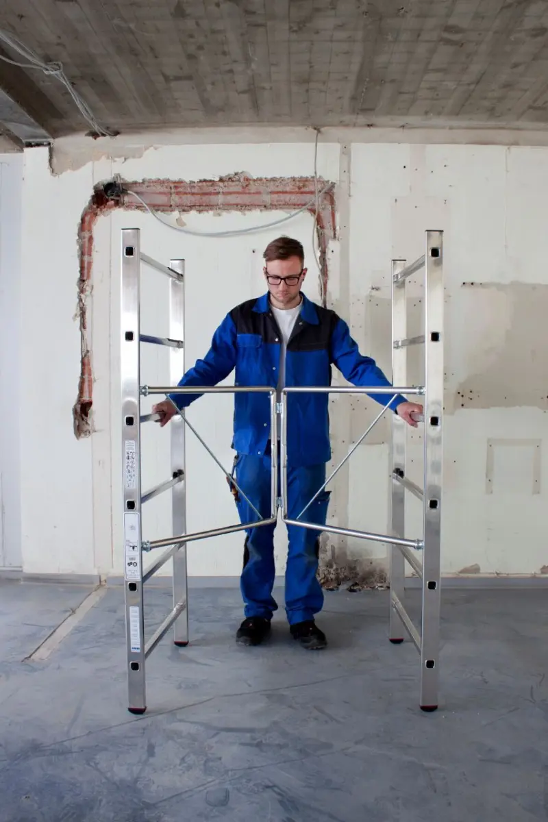 Šikovné skládací lešení s pracovní výškou do 2,9 m. Díky lehké a jednoduché konstrukci tvořené pouze dvěma částmi lze s lešením snadno manipulovat a  přenášet.