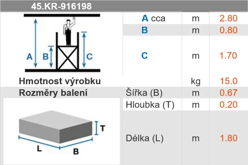 skládací; výška lešení 1,77 m; pracovní výška 2,90 m; 15 kg