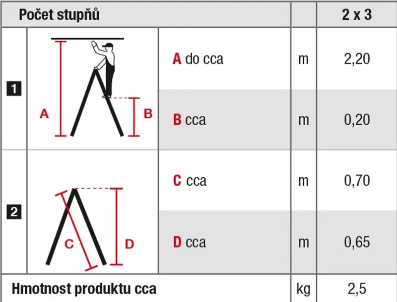 schůdky Al 3-stupňové oboustranné 65 cm PROTECO, nosnost 150kg