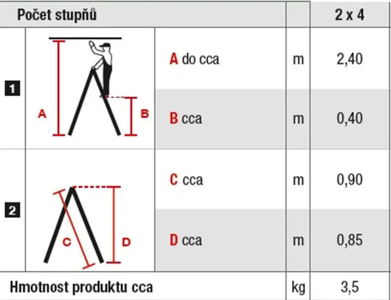 schůdky Al 4-stupňové oboustranné 85 cm PROTECO, nosnost 150kg