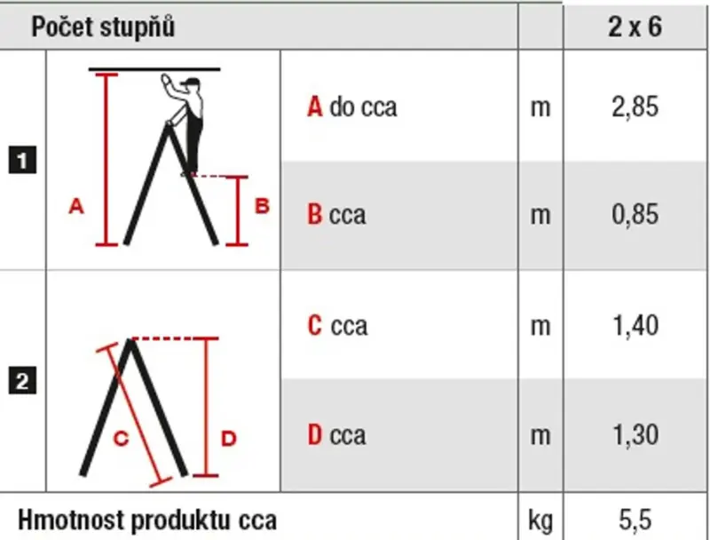 schůdky Al 6-stupňové oboustranné 130 cm PROTECO, nosnost 150kg