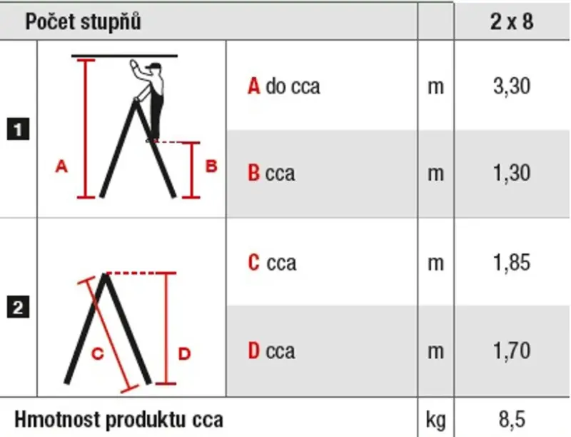 schůdky Al 8-stupňové oboustranné 170 cm PROTECO, nosnost 150kg