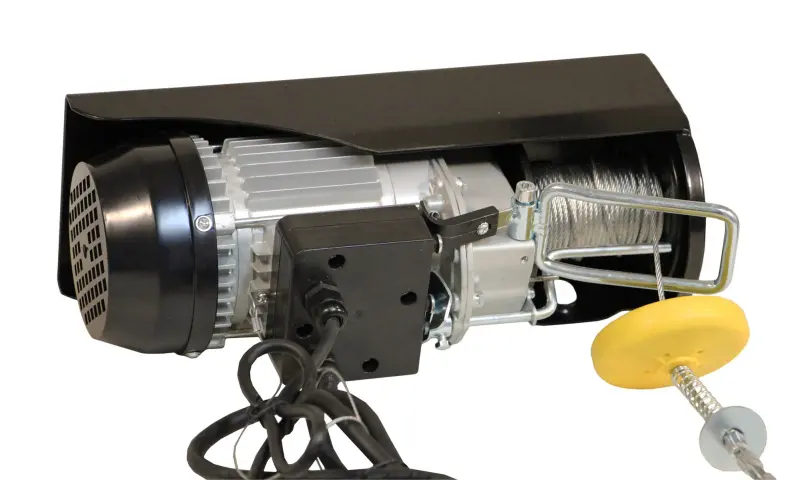 Elektrický lanový naviják (nebo také elektrický vrátek) Proteco 250/125 kg je vhodný ke svislému zdvihání a spouštění břemen s kladkou nebo bez. Pokud použijete kladku, lze zdvihat břemena o maximální hmotnosti 250 kg do výšky 6 m. Režim bez kladky je určen pro předměty do 125 kg, které zvednete do výšky 12 m. Pohon navijáku zajišťuje asynchronní motor o příkonu 500 W, který je vybaven vratnou tepelnou ochranou. Ta zabezpečí v případě přehřátí motoru jeho odpojení. Po vychladnutí motoru je jeho funkce opět obnovena. Motor je vybaven elektromechanickou brzdou, která při vypnutí el. proudu ihned zajistí manipulované břemeno v aktuální pozici. Převod je složen z ocelových kalených kol se stálou tukovou náplní v hliníkové skříni. Hřídele jsou uloženy v kuličkových ložiscích. K ovládání navijáku slouží ovladač, který je vybaven kolébkovým přepínačem – zvedání a spouštění břemena a bezpečnostním STOP tlačítkem. Pro snížení zatížení přívodního kabelu je ovladač zavěšen na ocelovém lanku.