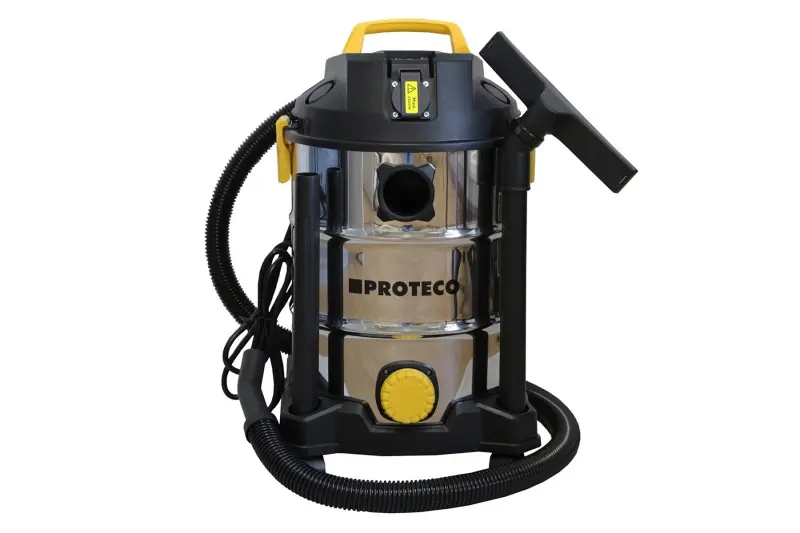 Průmyslový vysavač Proteco díky svému příkonu 1200 W zajistí dokonalý úklid suchých i mokrých nečistot včetně vylitých kapalin. Je pomocníkem při úklidu v domě, v dílně nebo i v autě. Nerezová nádoba pojme až 30 l nečistot. Otvor pro snadnější výpust vody. Rozkládací trubice usnadňuje skladování vysavače. Otočná kolečka s madlem zajišťují skvělou manipulaci s vysavačem. Vysavač má zásuvku pro napájení nářadí do výkonu 2 200 W spínanou elektronicky při zapnutí.