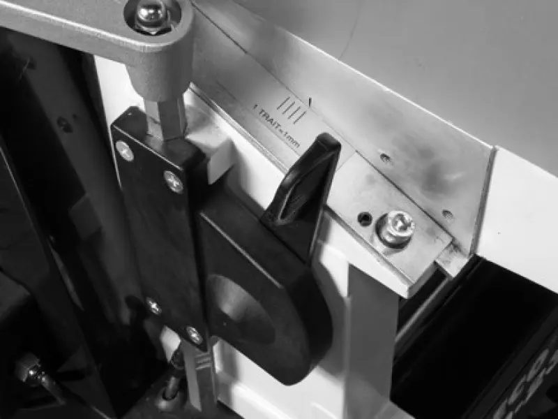 ubírané třísky se provádí zvýšením či snížením výšky stolu srovnávání, pomocí ručního kola. Ideální hodnotou pro maximální kvalitu povrchu je 1,5mm.