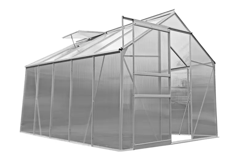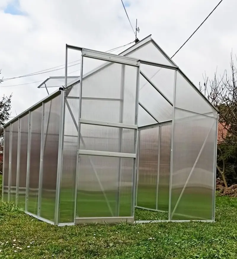 Zahradní skleník PROTECO o ploše 11 m2 je ideální volbou pro větší zahradu každého nadšeného pěstitele rostlin. Pevná hliníková konstrukce vyplněná 4mm polykarbonátovými deskami s ochranou proti ultrafialovému záření vám zajistí perfektně izolovaný prostor pro pěstovaní i subtropických rostlin. Odvětrávání skleníku je zajištěno 2 ventilačními střešními okny. Šířka 2,5 metru nabízí skvělý prostor pro 2 poctivé záhonky a dostatečně širokou uličku pro komfortní pohyb uvnitř skleníku.