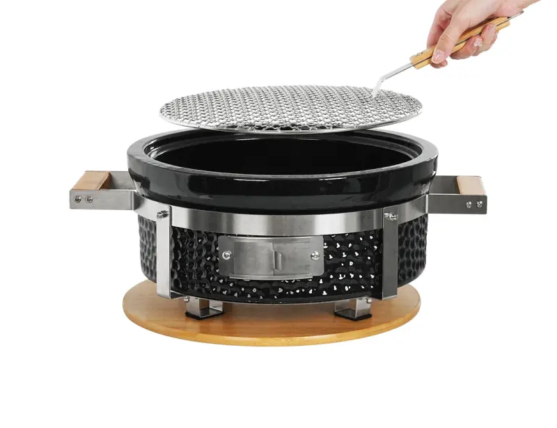 Keramický gril | kulatý | 34,5 cm | černý | se dřevěným podstavcem