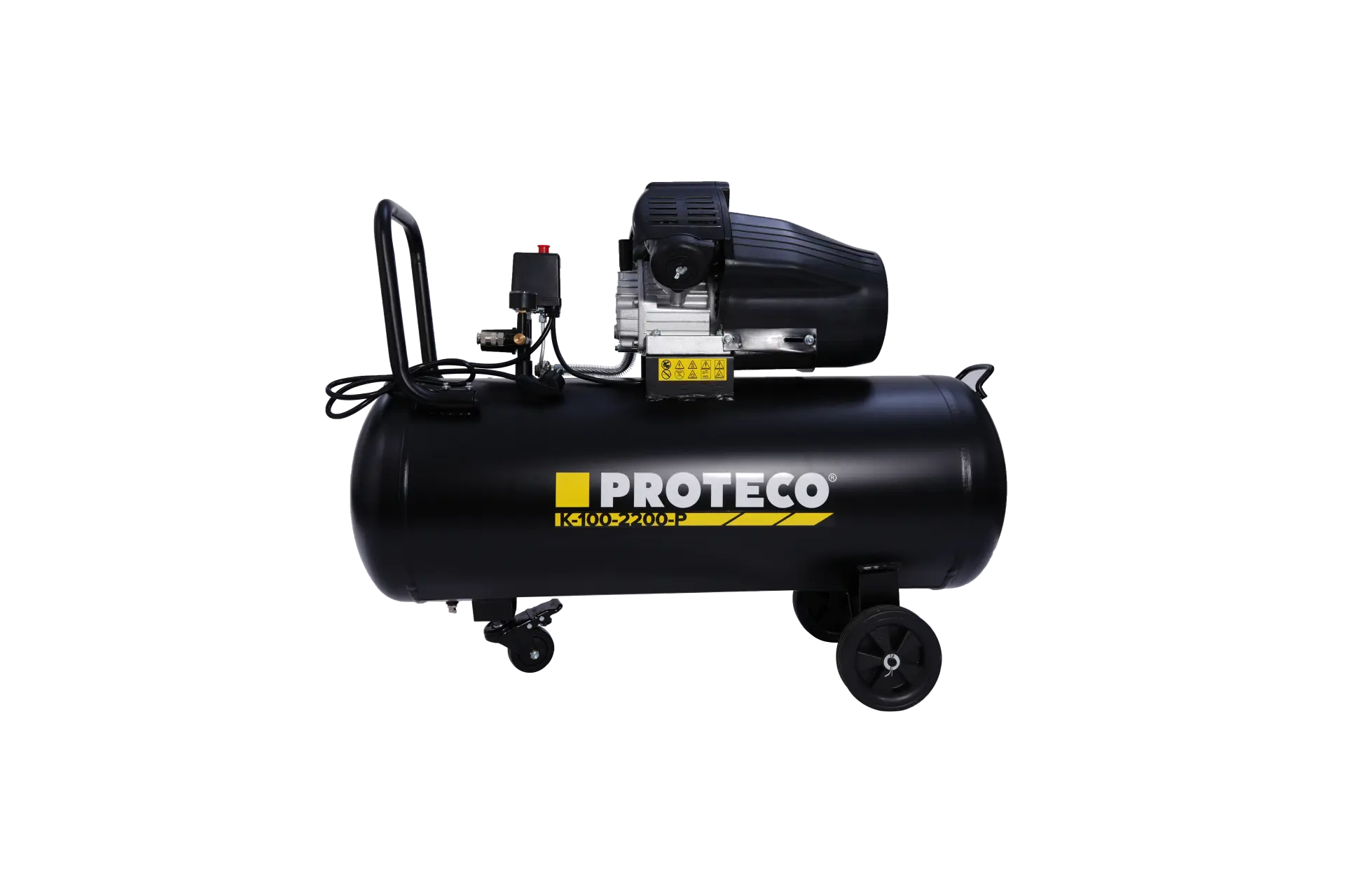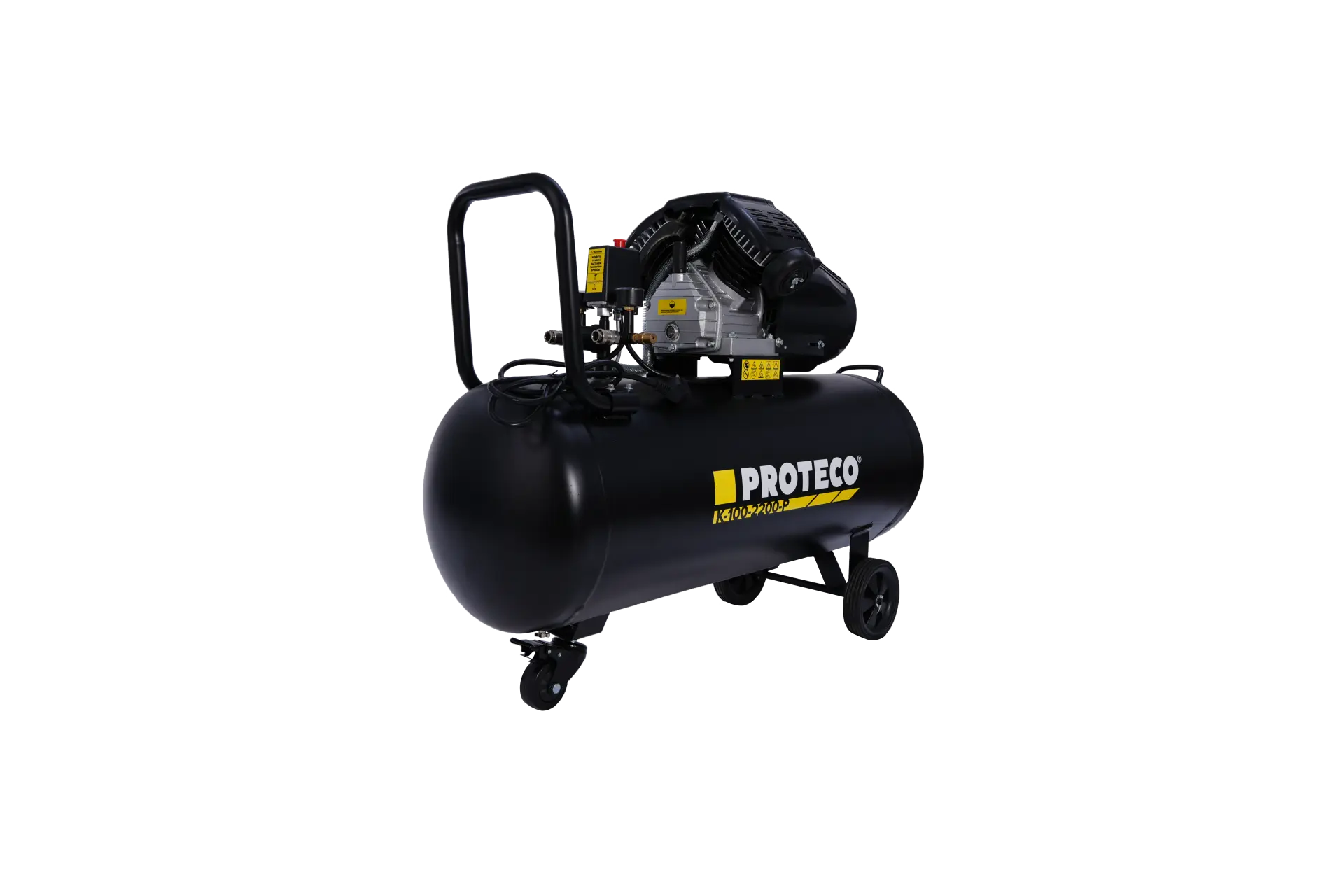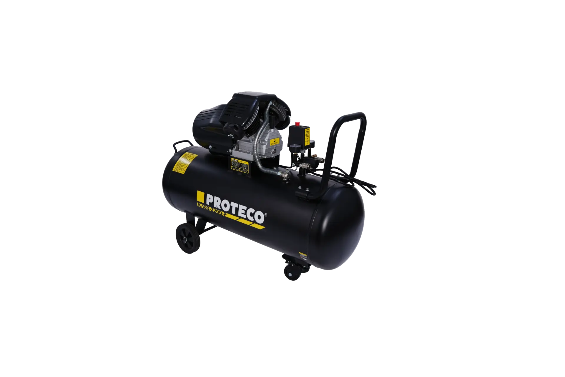 Velká nádrž o objemu 100 litrů: S touto kapacitou můžete pracovat déle, aniž byste museli neustále čekat na doplnění vzduchu. Je ideální pro práci s nástroji s vysokou spotřebou vzduchu, jako jsou pneumatická kladiva, utahováky, lakovací pistole atd.