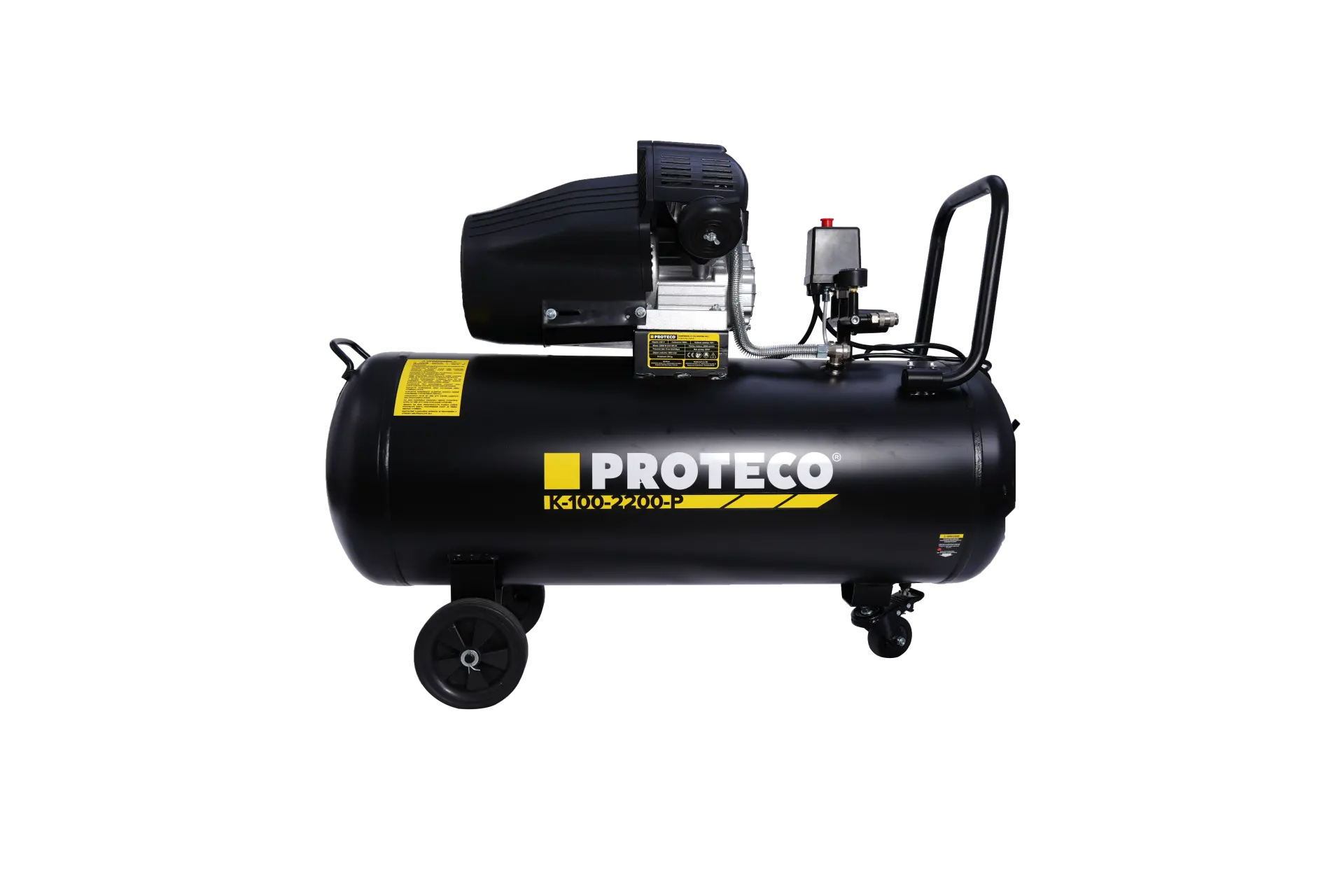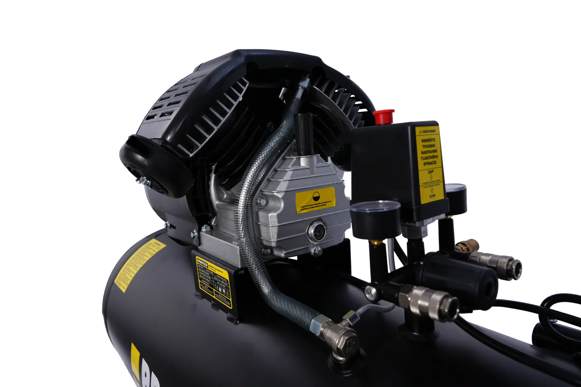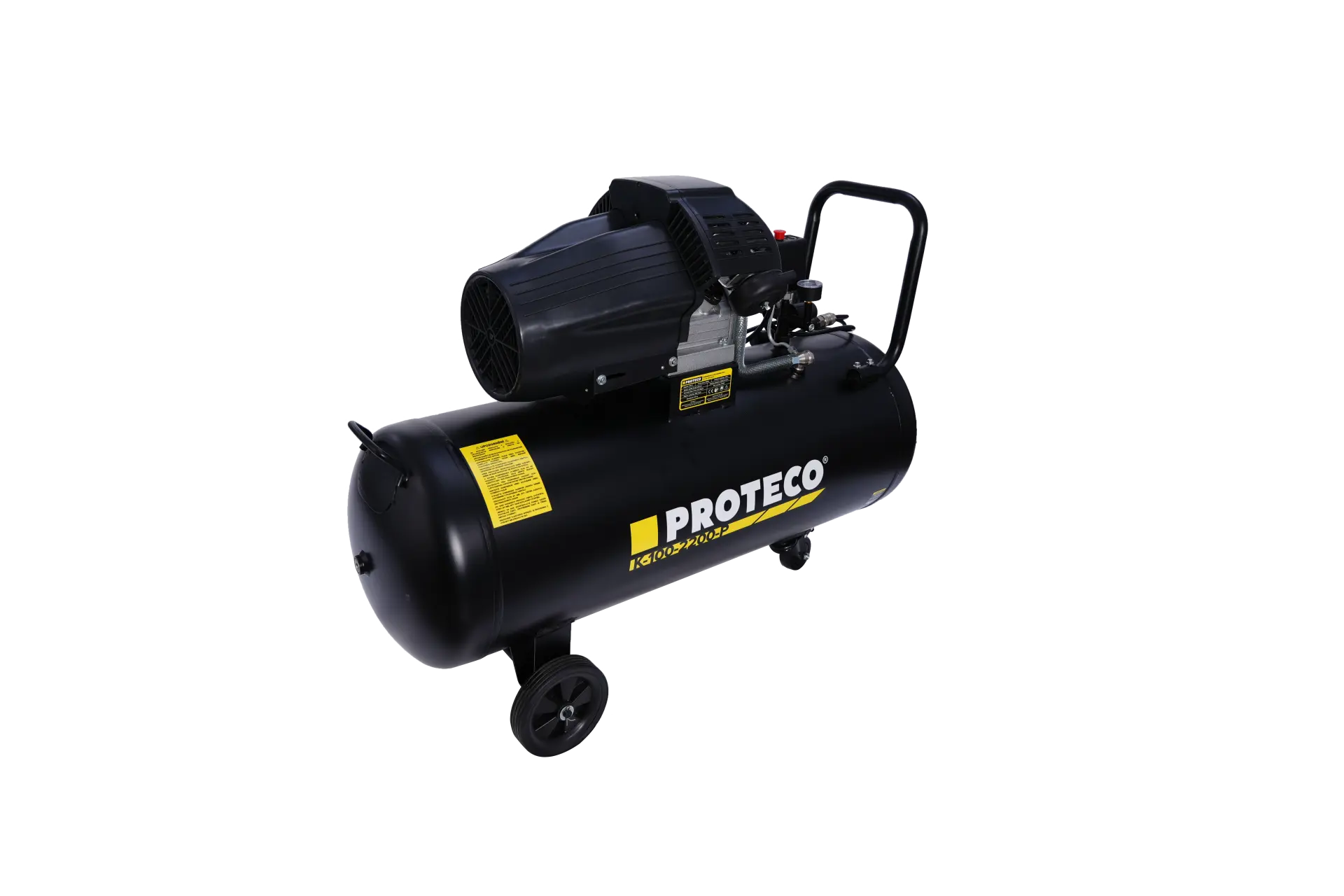 Velká nádrž o objemu 100 litrů: S touto kapacitou můžete pracovat déle, aniž byste museli neustále čekat na doplnění vzduchu. Je ideální pro práci s nástroji s vysokou spotřebou vzduchu, jako jsou pneumatická kladiva, utahováky, lakovací pistole atd.