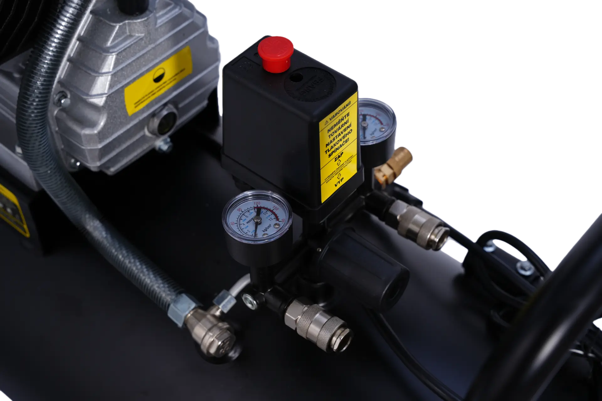 Bezpečnostní prvky: tlakový ventil a manometry umožňují snadnou kontrolu tlaku a bezpečné použití.