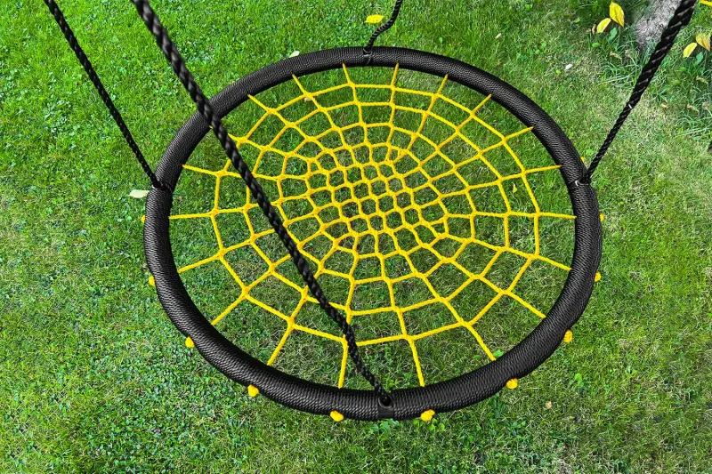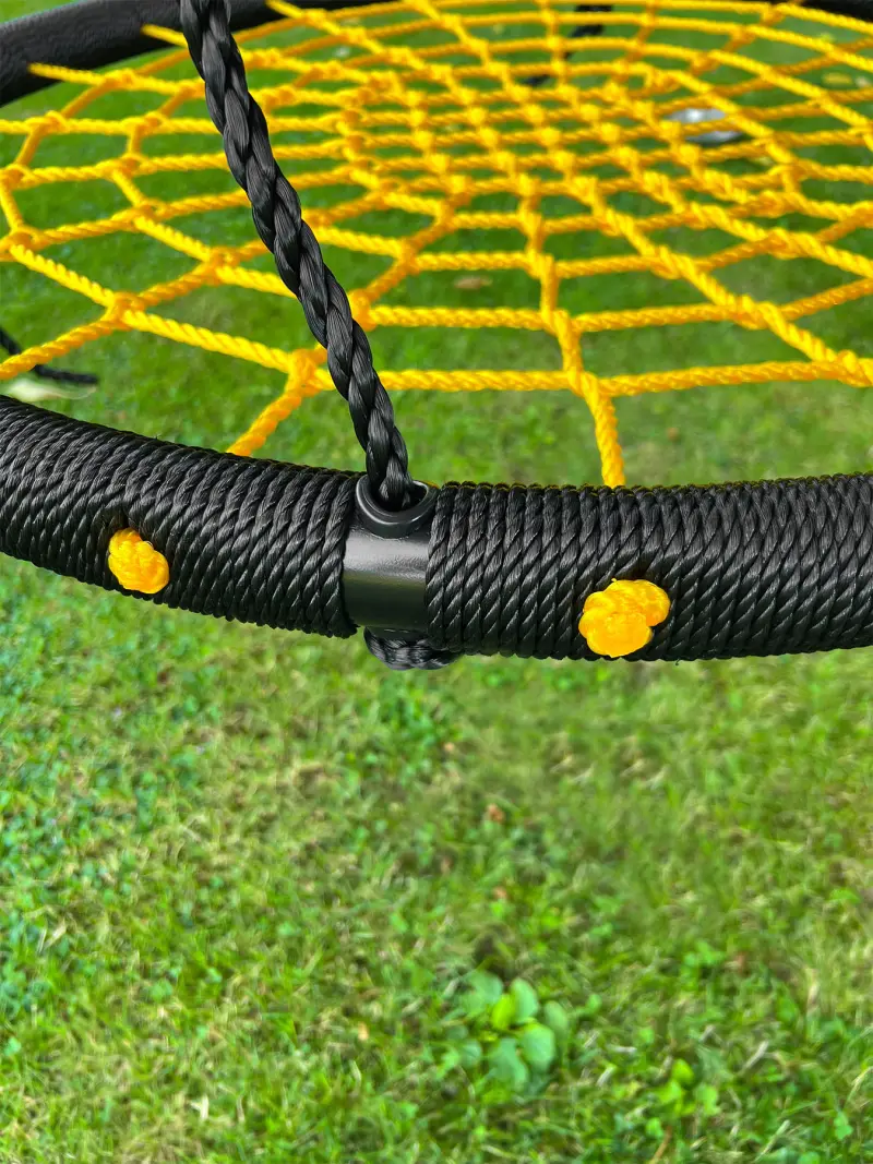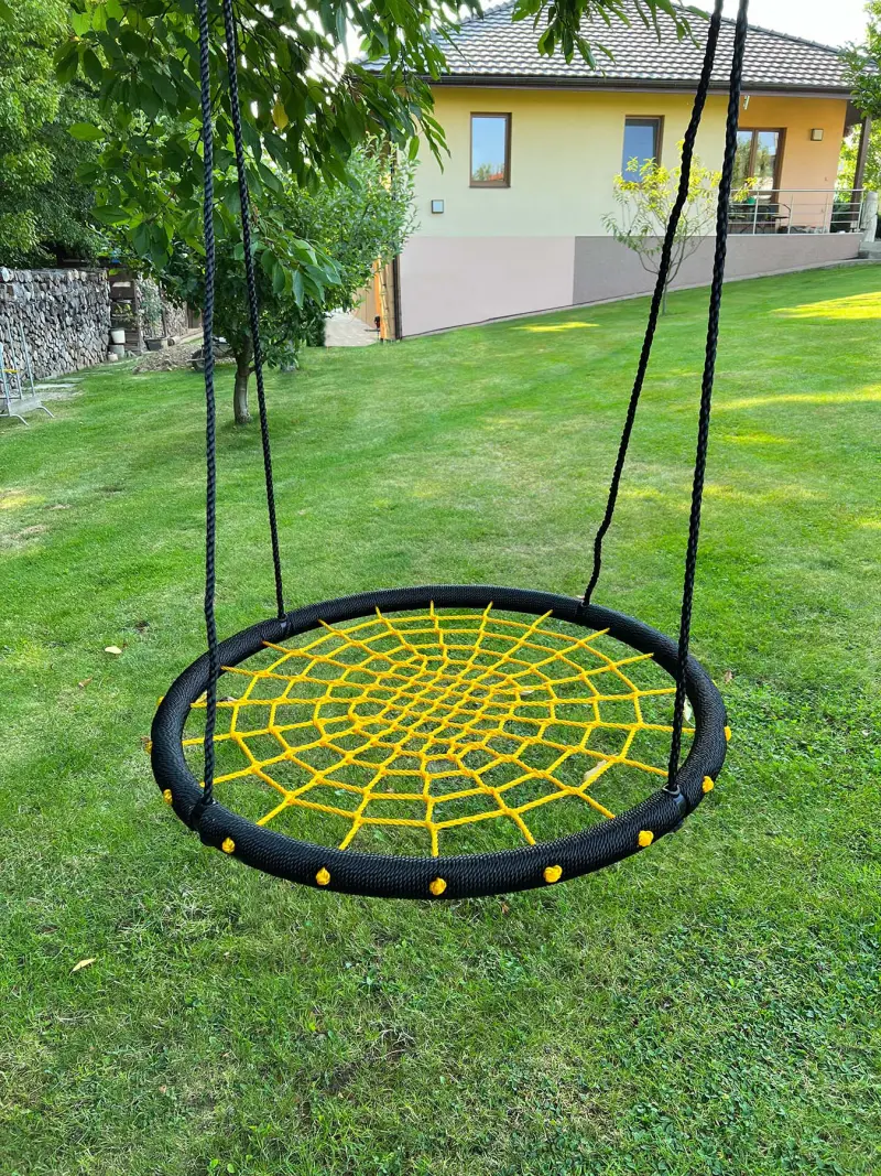 Houpačka je vyrobená z kvalitního nylonového lana, který nejen zajišťuje extrémní nosnost, ale bez problému odolává i všem povětrnostním podmínkám a rychle schne. Houpačku můžete tak bez obav nechat viset venku i když prší.