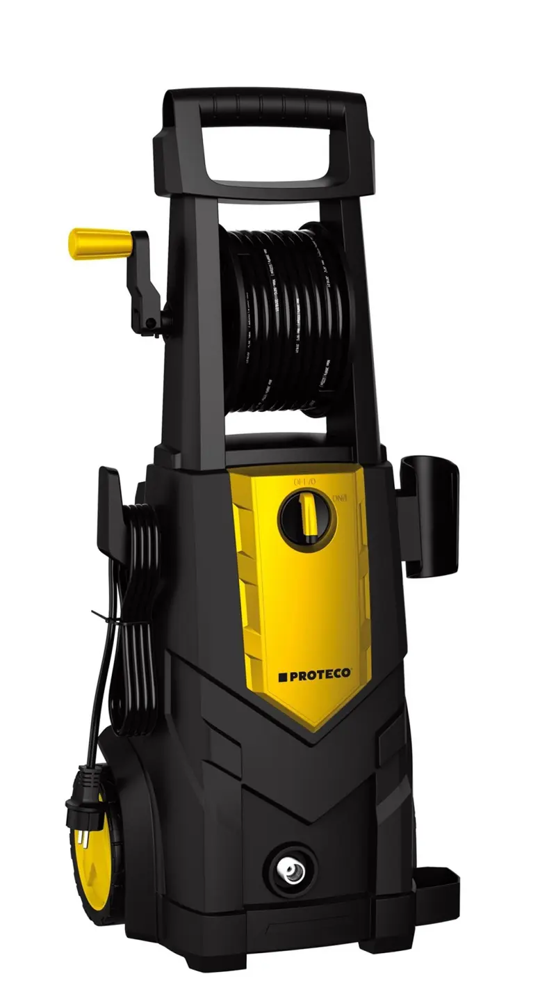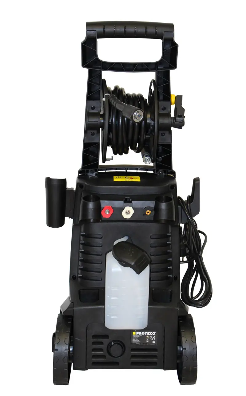 Vysokotlaká myčka (také vysokotlaký čistič, tlaková myčka, vapka, či wapka) Proteco 2200 W je určena k mytí težko odstranitelných nečistot z vozidel, zahradní techniky, chodníků, strojů apod., pomocí čisté vody a mycích prostředků k tomuto účelu určených. Lze ji využít i k čištění zaneseného odpadního potrubí pomocí speciální hadice. Teplota vstupní vody může být až 50°C. Tlaková myčka je osazena výkonným komutátorovým motorem a axiálním čerpadlem z hliníkové slitiny. Pistole je vybavena rychloupínací koncovkou a držákem se sadou trysek. Výhodou těchto trysek je přesné formování paprsku bez ztráty výkonu, velmi snadné čištění v případě ucpání, rychlá montáž a demontáž. Myčka je mimo jiné vybavena i navíjecím bubnem s tlakovou hadicí, držákem pistole a závěsem přívodního kabelu.