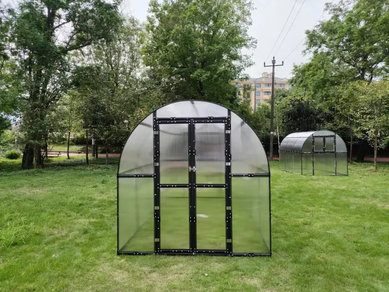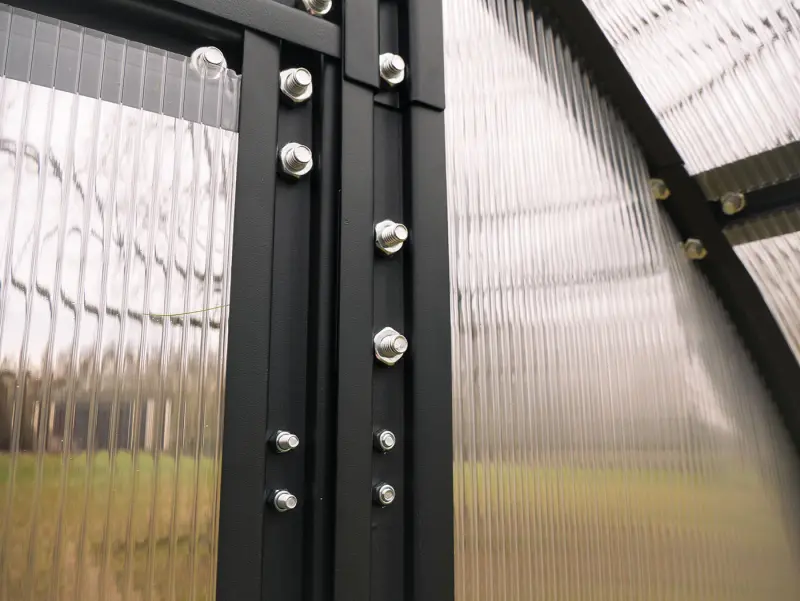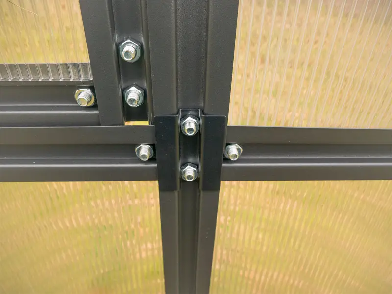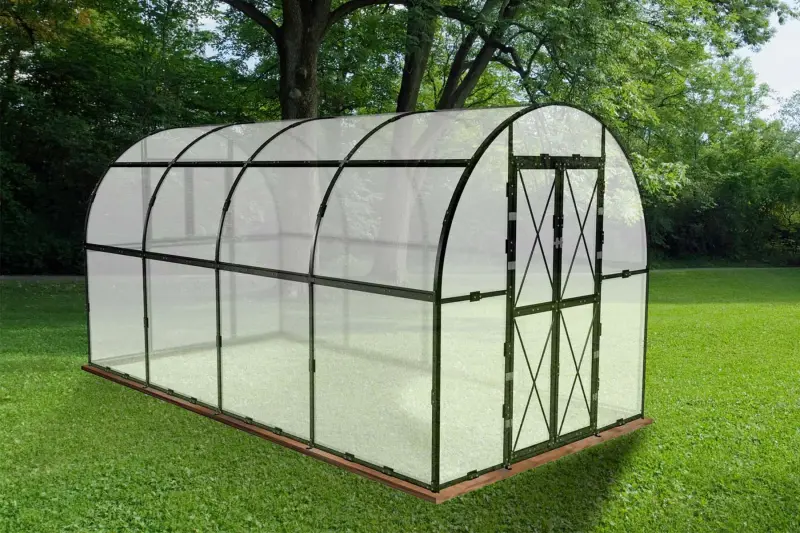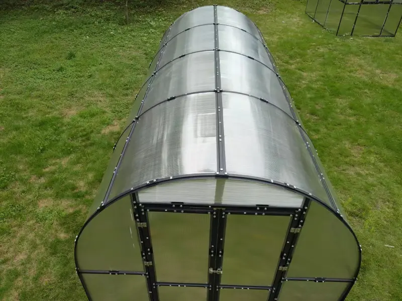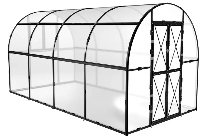 Nový obloukový skleník PROTECO s pracovní plochou 8,5 m2 je perfektním řešením pro všechny zahrádkáře, kteří touží po vlastním skleníku pro pěstování rostlin v nejlepších podmínkách. Robustní konstrukce skleníku se skládá z 1 mm tlustých ocelových profilů s galvanickým pokovením a finálním UV ochranným lakem, což zajišťuje maximální odolnost proti vnějším vlivům, včetně deště, větru a slunci, čímž se značně prodlužuje jeho životnost a skleník vám tak poslouží po dlouhé roky. Prosklení je tvořeno ze 4,5 mm polykarbonátu s ochranou proti UV záření. Tyto desky jsou nejen odolné, ale také přispívají ke zlepšení přirozeného osvětlení uvnitř skleníku, což má pozitivní vliv na růst a zdraví pěstovaných rostlin.