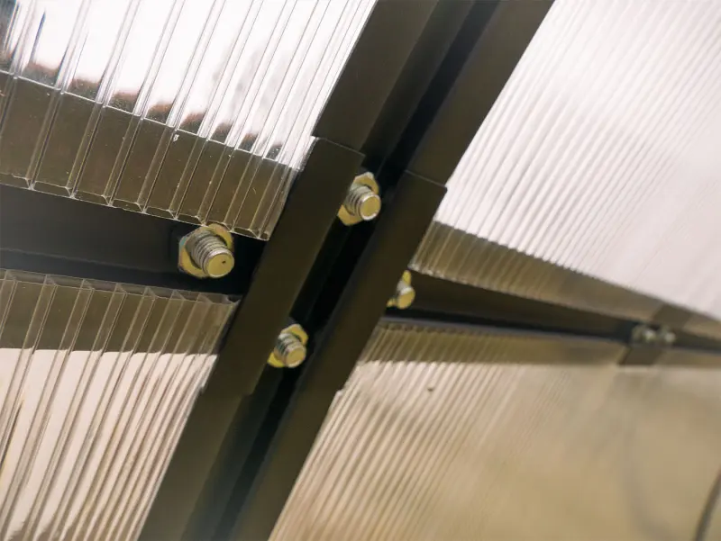 - Prosklení: čirý polykarbonát 4,5 mm s UV filtrem