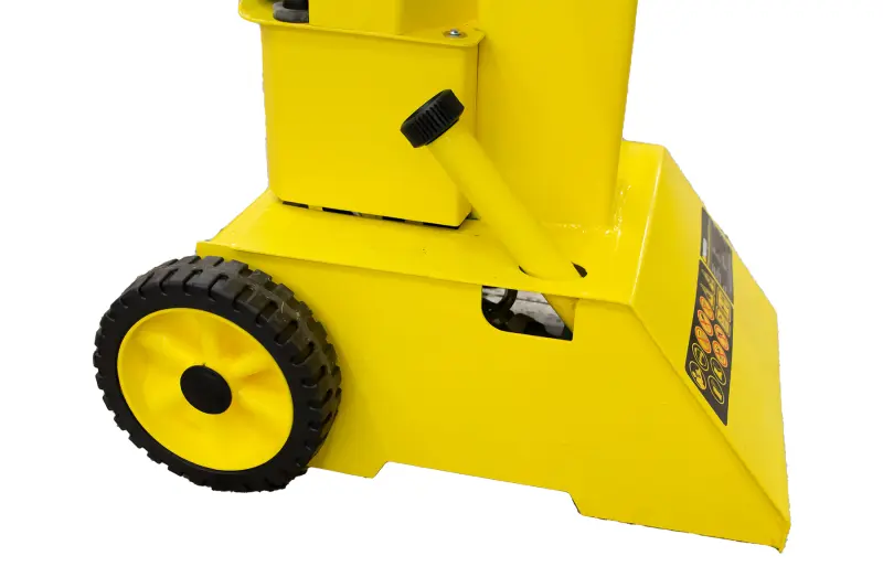 Snadný transport: Díky dvěma pojezdovým kolečkům a pogumovanému madlu je štípač snadno přemístitelný.