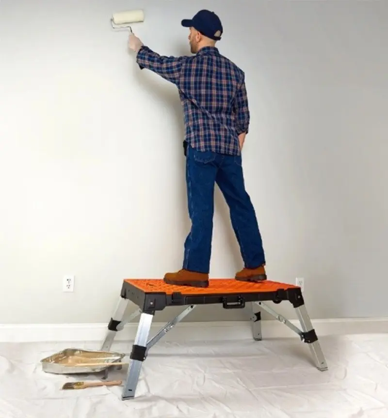 Díky mechanismu vysunujících nohou, lze pracovní stůl snadno předělat na vysutou plošinu, pro bezpečnou práci ve výšce nad úrovní běžného dosahu. Díky tomu lze snadno dosáhnout míst, které by jinak vyžadovali nižší lešení nebo štafle. Snadno lze opravovat nebo malovat stěny, dosáhnout elektrických rozvodů, potrubí a dalších instalací. Plošina umožňuje bezpečný, pohodlný a stabilní přístup k těmto oblastem.