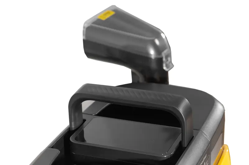 Manipulace s přístrojem je velmi snadná. Pro rychlé přenášení poslouží robustní rukojeť, při práci oceníte kolečka, která zajistí plynulý pohyb po podlaze. Díky kompaktnímu designu a rozměrům 33,8 x 23,2 x 28,5 cm navíc čistič nezabírá zbytečné místo při skladování.