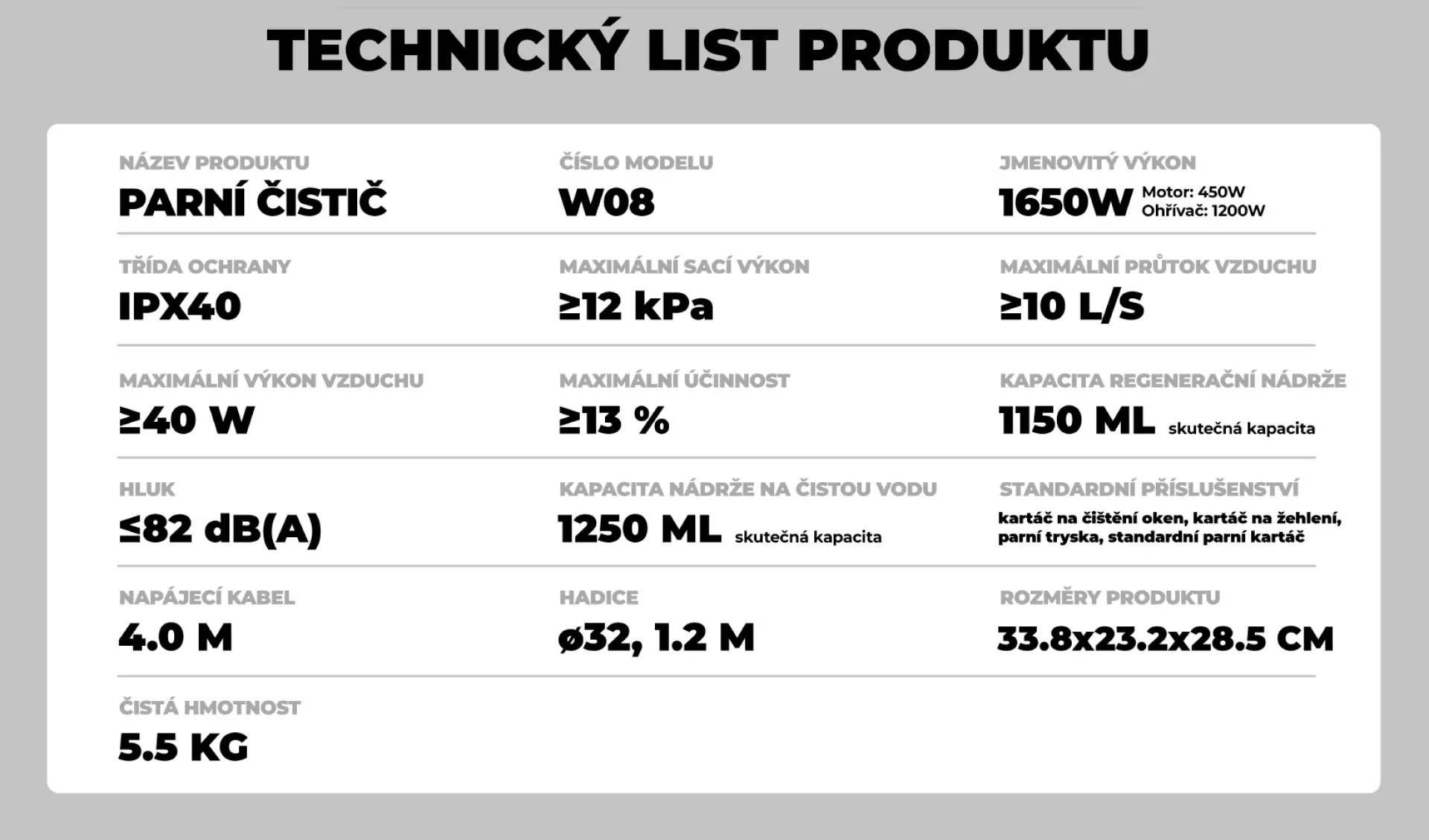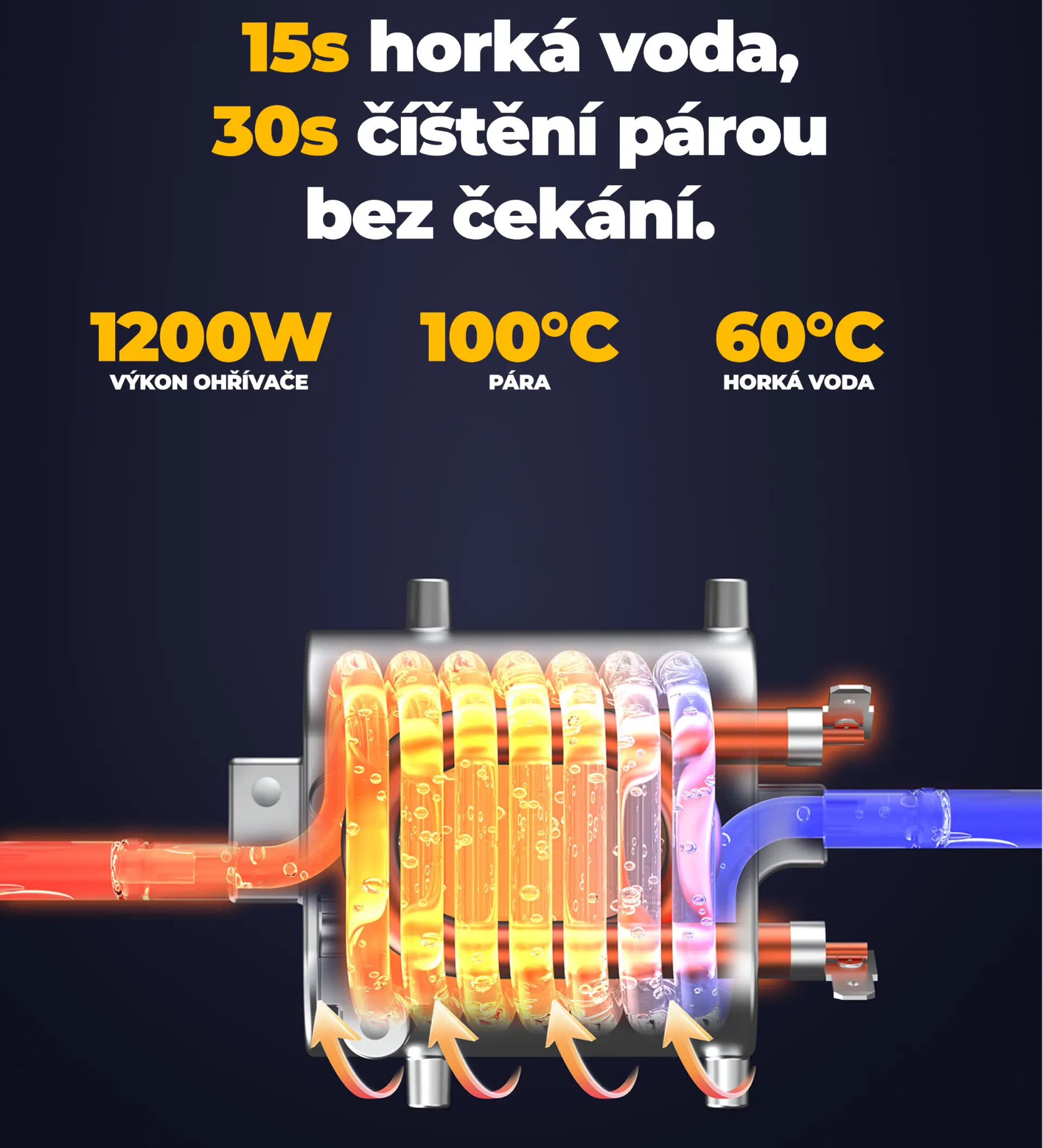 Výkon 1650 W - rychlý ohřev a silná pára pro efektivní úklid