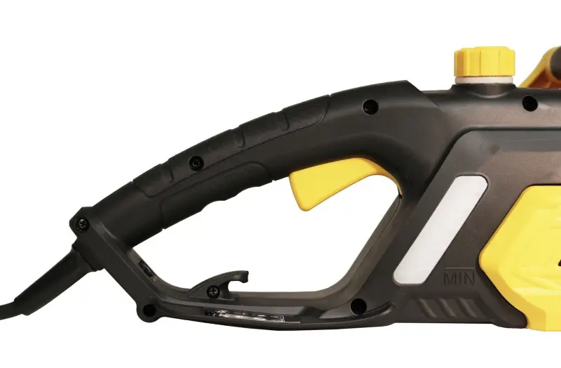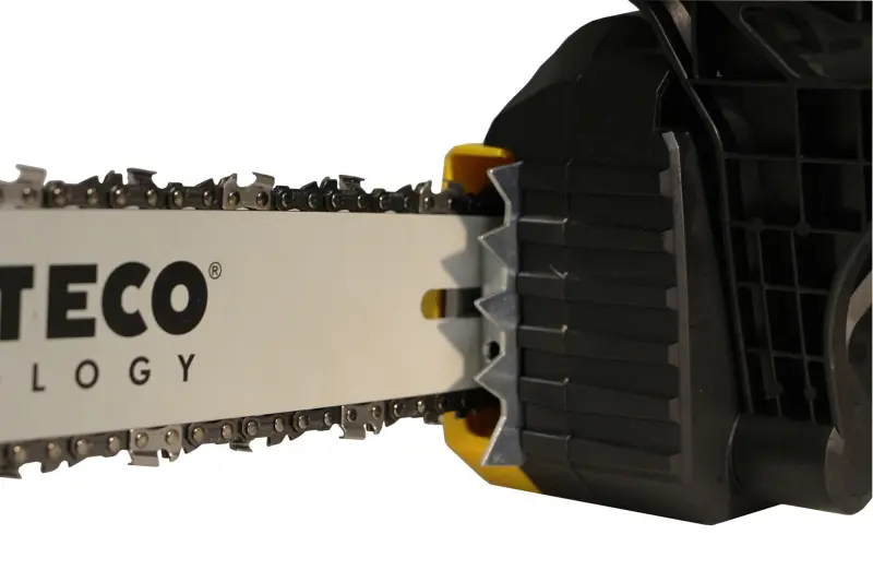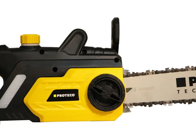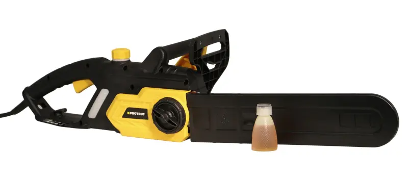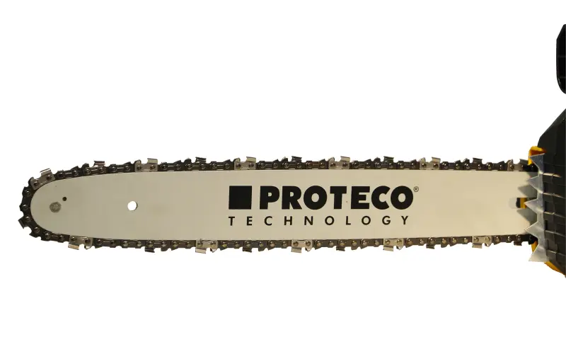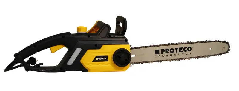 Elektrická řetězová pila Proteco s výkonným motorem 2 400 W a řídící elektronikou pro plynulý náběh do konstantních pracovních otáček. Konstrukce pily nabízí sadu standartních bezpečnostních prvků (doběhovou brzdu, bezpečnostní brzdu) a automatické mazání řetězu. Řetěz pily má 57 zubů. Pila má dále FASTFIX - výměnu a napínání řetězu bez použití nástrojů a SOFTSTART - omezení rozběhového proudu pro šetrné uvedení stroje do provozu a pozvolný náběh do pracovních otáček. Na pile je přehledný olejoznak pro kontrolu stavu oleje v nádržce.