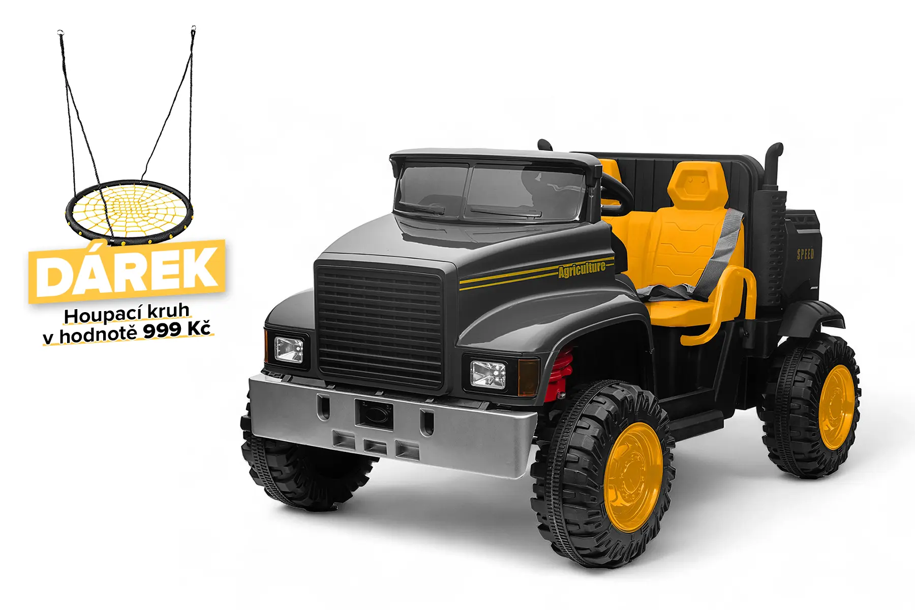 Hledáte výkonný elektrický náklaďák, které potěší vaši ratolest a zároveň vám dá klid na duši? Kamion FARMER v dvoumístném provedení s dvoumotorovým pohonem, pěnovými EVA koly a moderní výbavou je tou správnou volbou. Skvělé pro děti od 3 do 8 let, ať už na zahradu, do parku nebo na výlet.