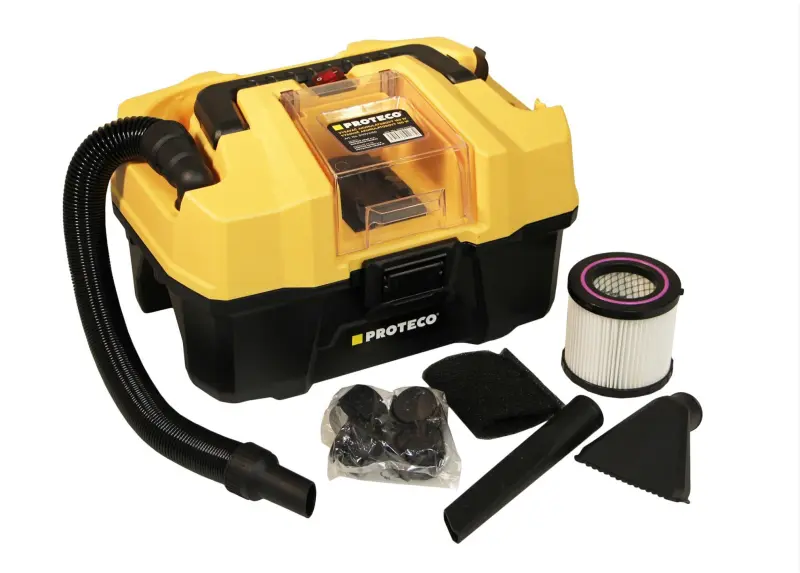 Aku vysavač 180 W PROTECO pro suché i mokré vysávání nebo pro suché foukání. Vysavač pracuje s akumulátorem 20 V PROTECO. Součástí balení je HEPA filtr, trojúhelníkový kartáč, houbový filtr, štěrbinová hubice. Snadný na přepravu a skladování. Umožňuje suché vysávání a foukání.