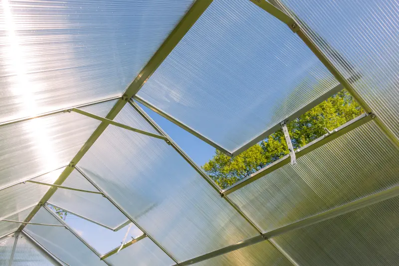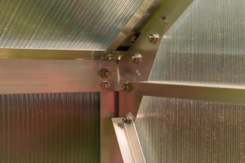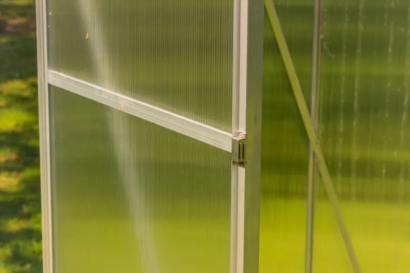 Stěny skleníku jsou tvořené 4mm dvoustěnnými polykarbonátovými deskami s UV ochranou, které skvěle drží stabilní teploty a vlhkosti uvnitř skleníku, a zároveň chrání vaše rostliny před škodlivými slunečními paprsky, čímž zajistí optimální prostředí pro růst vašich rostlin. Desky se také snadno čistí.