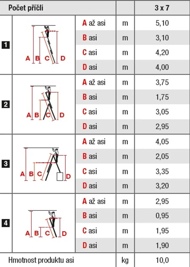 KRAUSE 3x7; 195/310/420 cm; max. pracovní výška 5,1 m; využití i na schodech a dalších víceúrovňových površích
